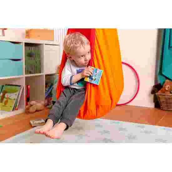 Cosy chill-out space: children love to curl up in this teardrop-shaped hanging nest, floating just above the floor. With its large, soft seat cushion (cover: 100% polyester), the nest is a quiet and safe place for them to relax. Children can also cling onto the nest and use it as a monkey swing. Cushion is removable. ø 70 cm, H: 150 cm. Pure organic cotton from controlled organic cultivation. Max. load: 80 kg.