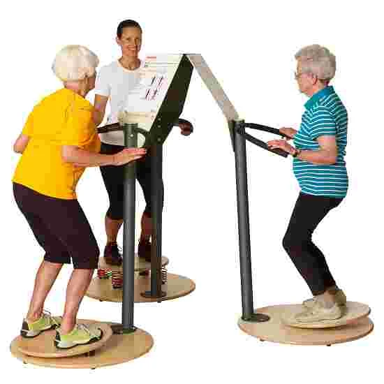 This coordination obstacle course makes the concept of effective training in short bursts without significant effort a reality. Each station in the coordination obstacle course features an illustrated exercise board for independent training. The exercises develop movements along the body axes and therefore place demands on different function areas and muscle groups at the same time. As a result, training impacts on all of the vestibular motor system and with just a few minutes per day, coordination can be noticeably improved.
