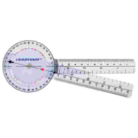 360-degree goniometer for measuring joint mobility in 1-degree increments. Can be used with just one hand without having to change position. Transparent plastic.