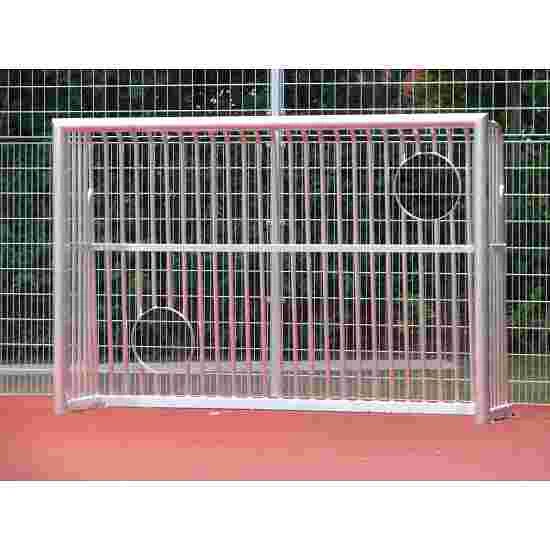 The Sport-Thieme fully welded heavy duty football goal with target cut-outs is a perfect solution for playgrounds and other facilities where the equipment is frequently used. The goal is fully welded and made of thick-walled aluminium, making it virtually impossible for the crossbar, posts, cage and flanges to break. The two target cut-outs in the cage add to the fun, allowing you to work on your accuracy.